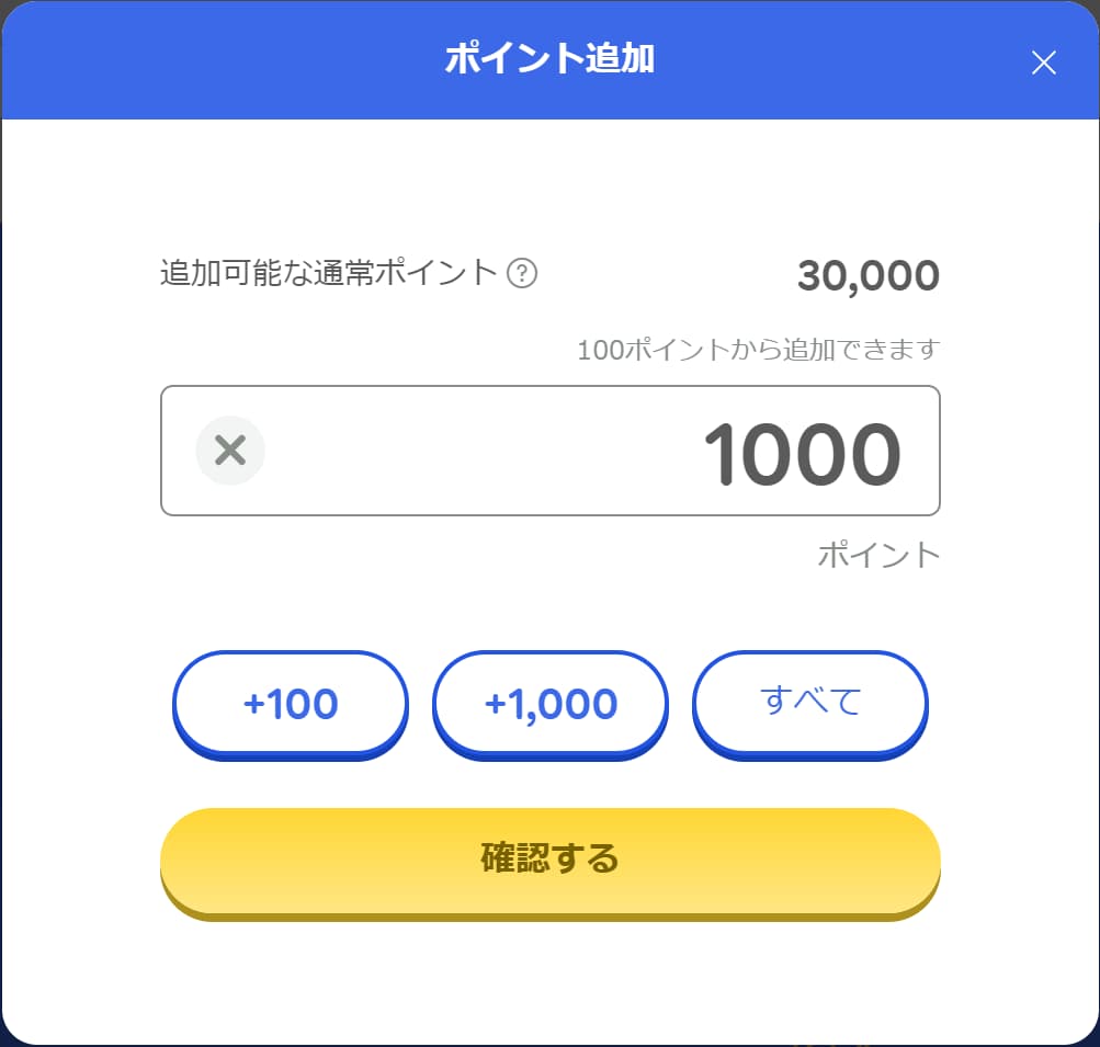 「↑追加する」を押すと追加可能なポイントが表示されます。