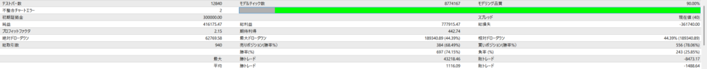 完走:利益+413175円 ドローダウン 44.39%